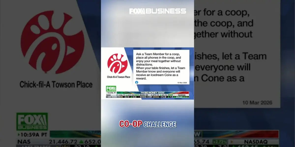 A Chick-fil-A in Talson, Maryland, is testing a "Cell Phone Coop Challenge." Customers who put their phones away during their meal receive free ice cream. This initiative aims to encourage mindful dining and face-to-face interaction.