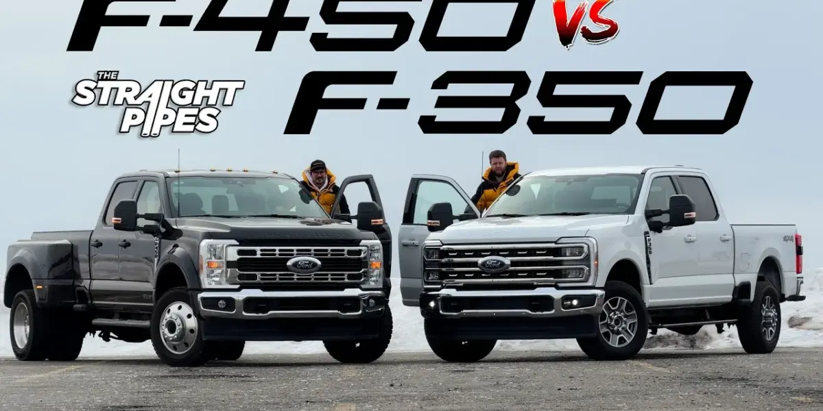 Ford's F-350 with the 'Godzilla' V8 and the F-450 dually with the Power Stroke diesel face off. We compare their power, looks, interiors, and towing prowess to determine which Super Duty reigns supreme for different needs.