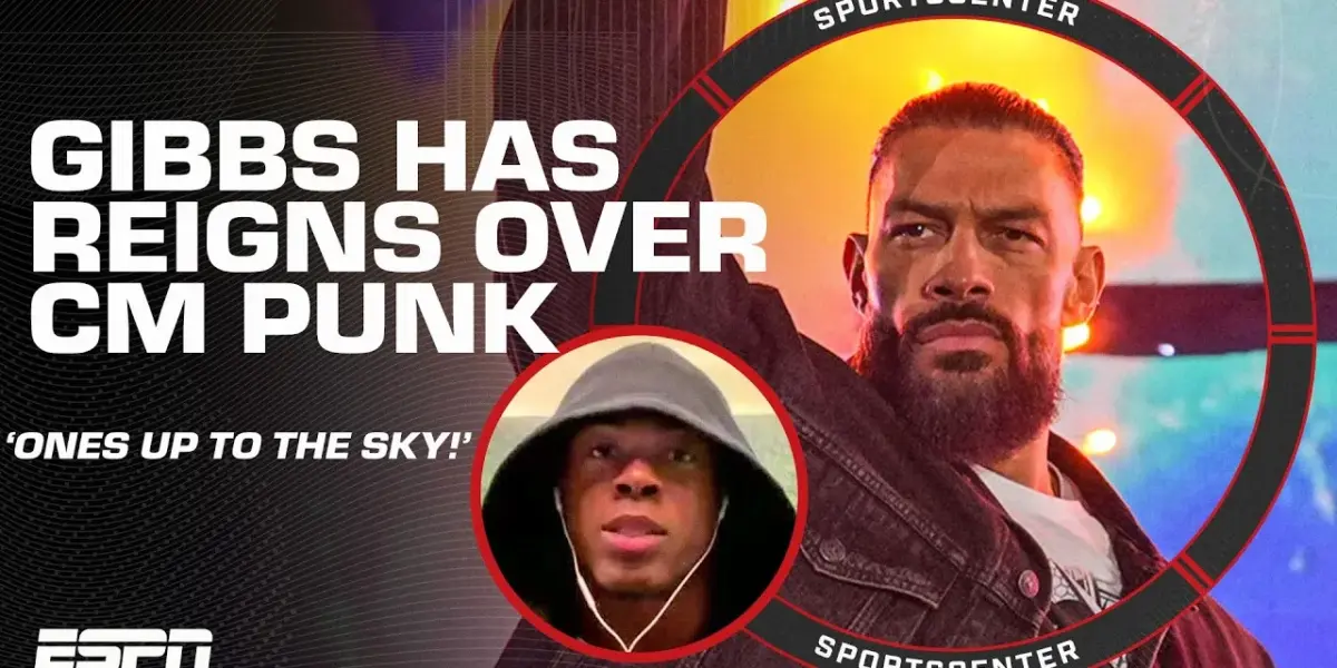 Source: Jahmyr Gibbs is rooting for Roman Reigns vs. CM Punk: ONE’S UP TO THE SKY! ☝️| SportsCenter (YouTube)