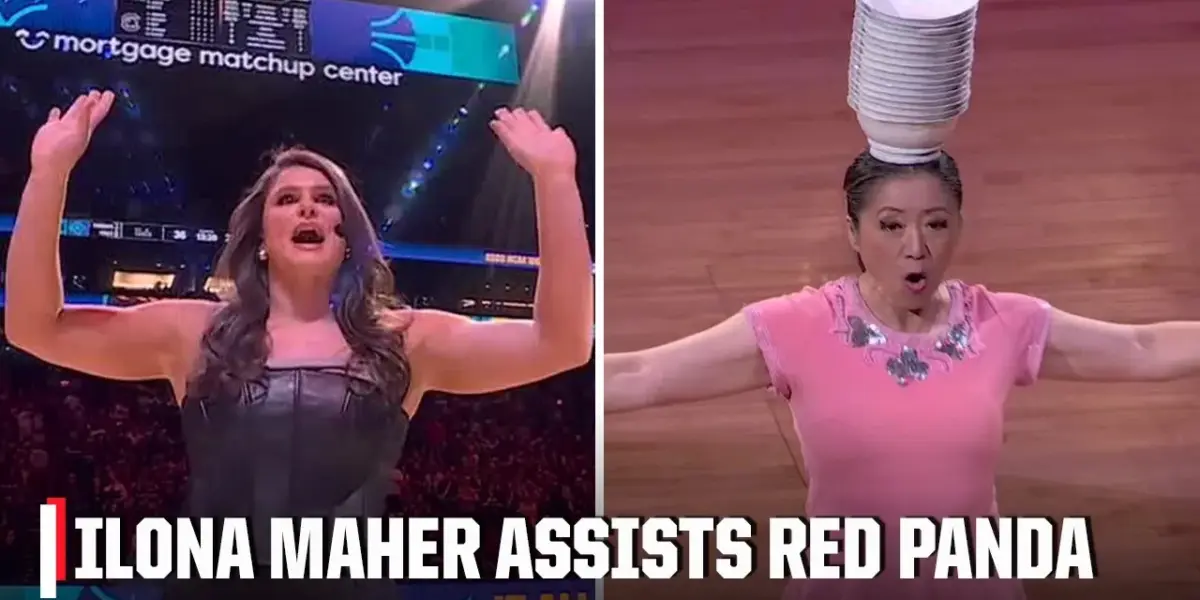 U.S. Women's Rugby star Ilona Maher assisted Alana, also known as Red Panda, during a challenging NCAA Women's Basketball Championship halftime show. After initial struggles with ball-handling under pressure, Alana rallied with crowd support, turning a nervous moment into a triumphant performance.